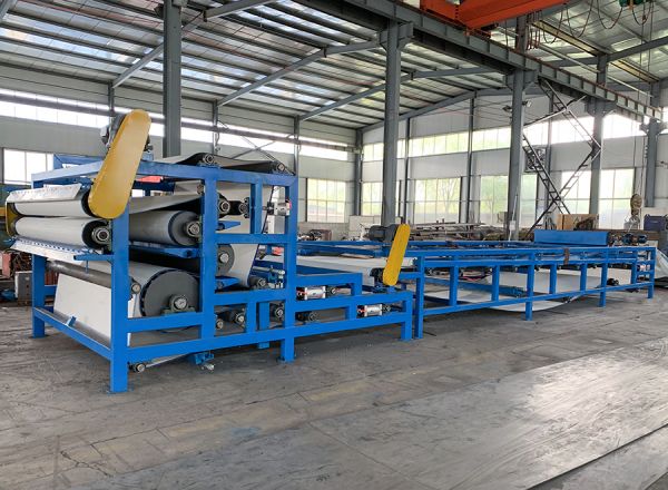污泥与投加的絮凝剂经充分混合后入带式污泥压滤机的污泥重力脱水区,依靠污泥本身重力脱去大量水分,重力区设有布泥装置,可将污泥平均分布于滤带上,继而进入上下层网带之间楔形压榨段,进行预压脱去游离水,最后进入压榨区,形成泥饼。